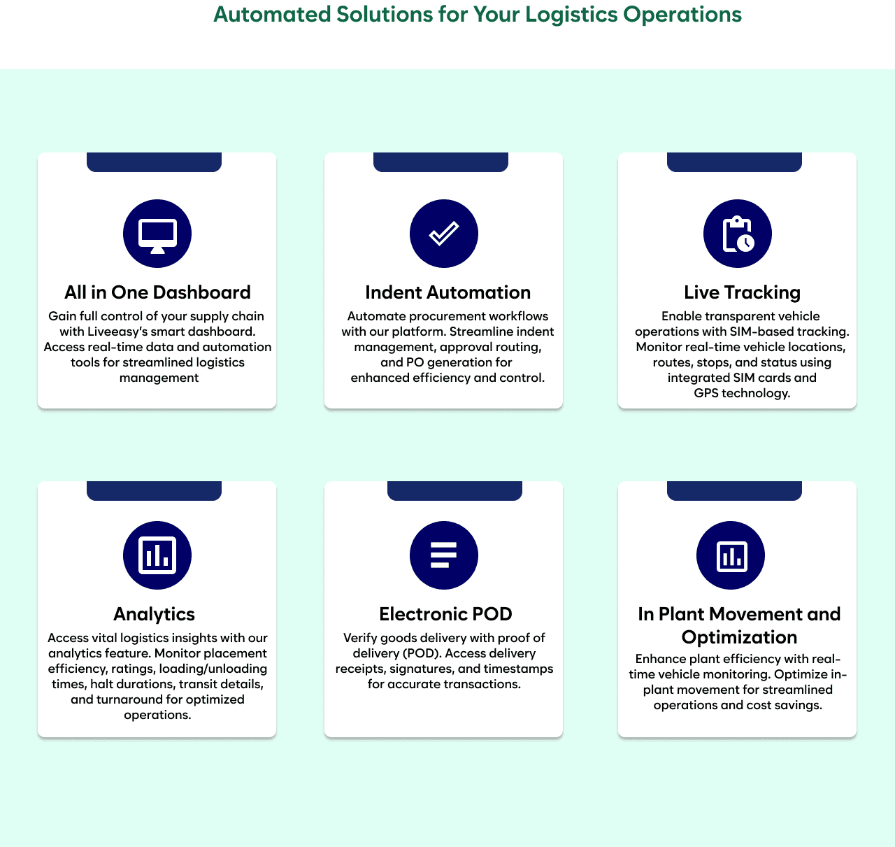 Liveasy is a Transport Management System (TMS) designed to help businesses manage freight, optimize logistics operations, and gain visibility across their supply chain.